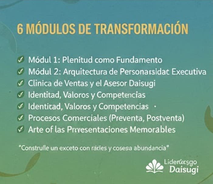“Incorpore el sistema de crecimiento japonés PODAR para transformar su personalidad ejecutiva y comercial. A través de un laboratorio de 12 semanas, aprenda a construir una marca personal con raíces sólidas y resultados sostenibles que conviertan su valor en riqueza integral